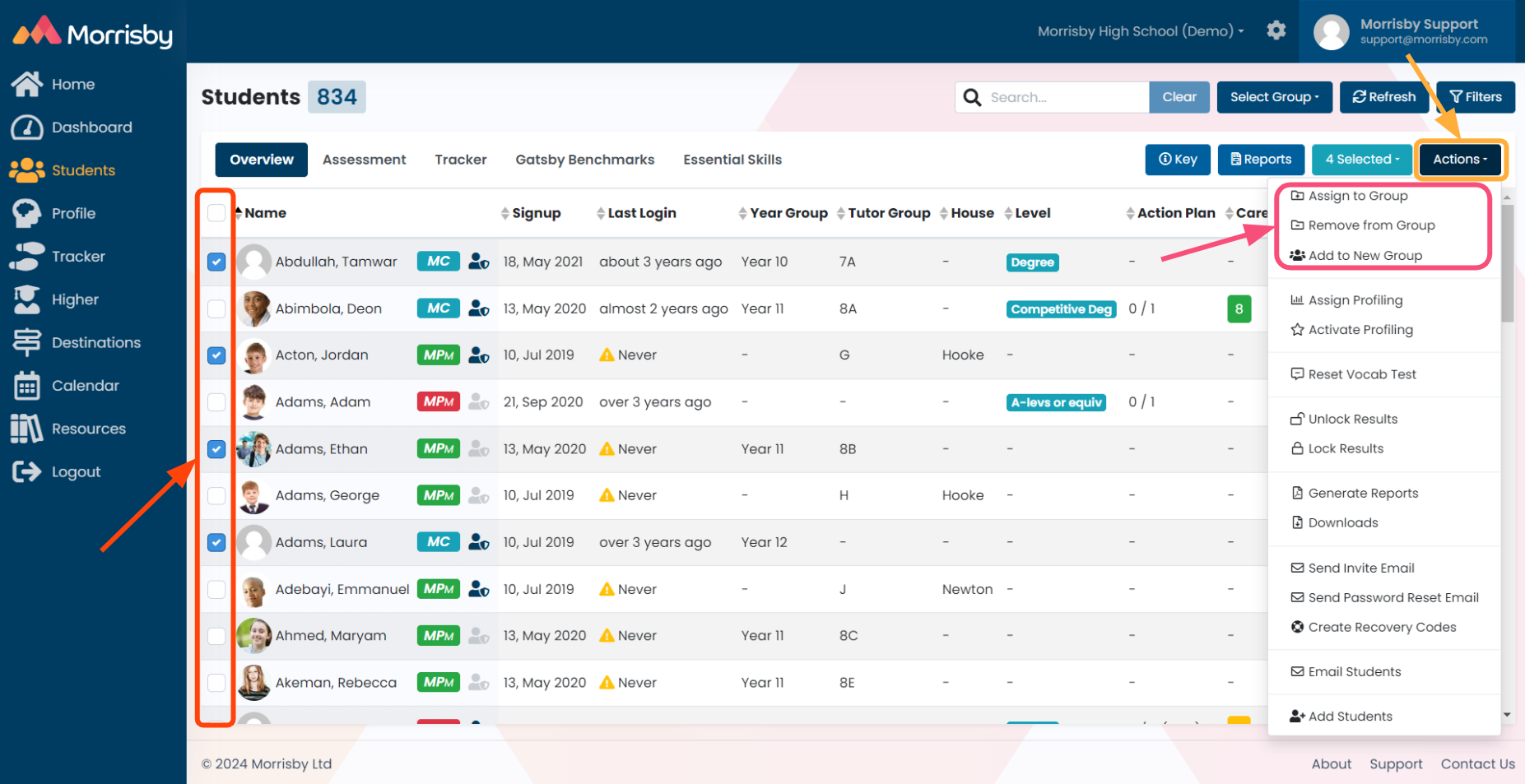- Select 'Assign to Group' in the 'Actions' drop-down